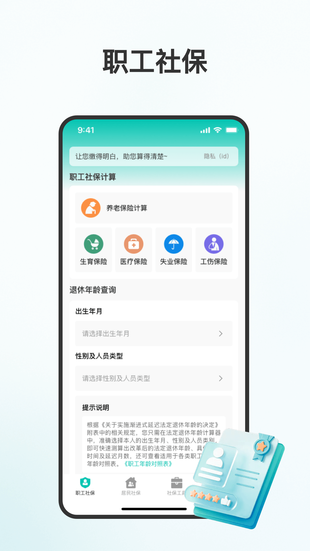 一款专业、便捷的社保及个税管理工具,通过清晰的功能分区和直观的可视化设计,帮助用户轻松掌握社保政策、精准测算个人权益。